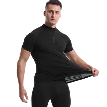 T-shirt de course de gymnastique à manches courtes avec demi-fermeture éclair personnalisé unisexe Sportif Polyester Spandex 180 grammes tricoté blanc Quick Dry Slim Fit
