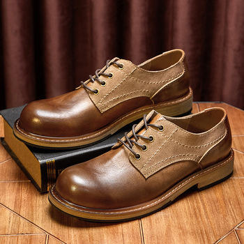 Men's Autumn British Vintage Genuine Leather Loafers Round Toe Breathable Patchwork Design Office & Career Shoes